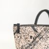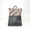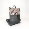 Lo zainetto “Atena” è realizzato con due pellami differenti, nella parte inferiore vi è un pellame martellato di colore nero, mentre nella parte superiore uno beige arricchito da schizzi di vernice nera. Il pellame viene trattato proprio come una tela, pronta per essere dipinta con tinture apposite per pelle. Questa grafica astratta crea un contrasto molto accattivante donando allo zainetto dinamismo e originalità. L’interno è composto da una fodera in cotone color nero con uno scomparto per ipad e un altro per i documenti, e due taschine in tessuto. Le minuterie e zip sono in metallo nickel.