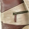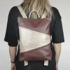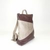 Lo zaino Atena, è composto da tagli obliqui che dividono lo zaino e permettono l’ abbinamento di pellami diversi. Il volume totale è in pelle di vitello martellata color bordeaux, mentre gli inserti sono in pelle di vitello con una stampa coccodrillo color beige. All’interno c’ è uno scomparto per il pc e diverse tasche capienti e funzionali, in modo da avere ogni accessorio perfettamente ordinato, mentre nello schienale, c’ é un’ulteriore tasca con chiusura a zip.